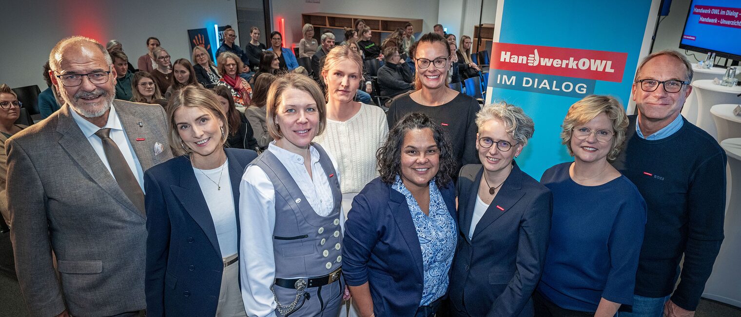 Frauen sind im Handwerk unverzichtbar, trotzdem ist ihr Anteil immer noch sehr gering. Deshalb kamen Vertreterinnen aus dem Handwerk vor rund 60 Gästen bei der Veranstaltung „Handwerk OWL im Dialog“ im Campus Handwerk zusammen. Unter dem Motto „Frauen im Handwerk – Unverzichtbar!“ entwickelte sich eine leidenschaftliche Podiumsdiskussion über Vorurteile, Herausforderungen und notwendige Maßnahmen.